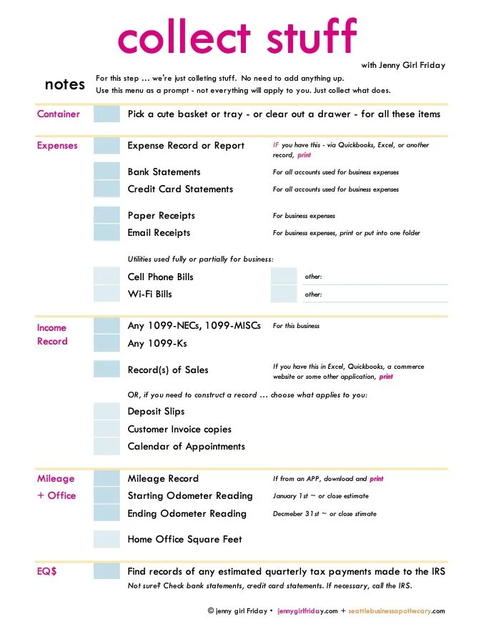 Also, right now, fresh off the job, is the BEST time to make a change or two, to make life easier next tax season, and throughout the year. Do your future self a big favor by taking just 5 - 10 minutes to reflect!